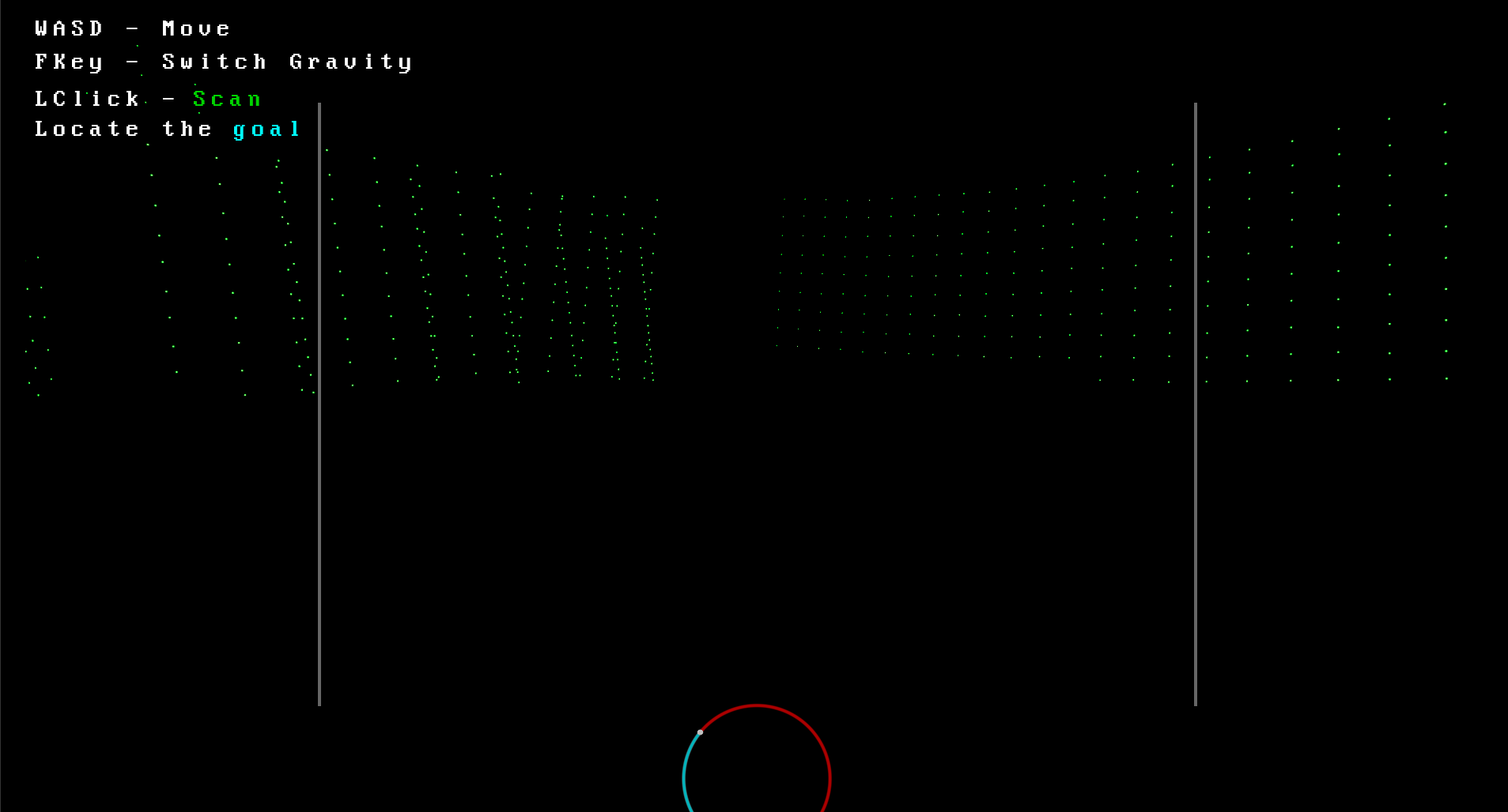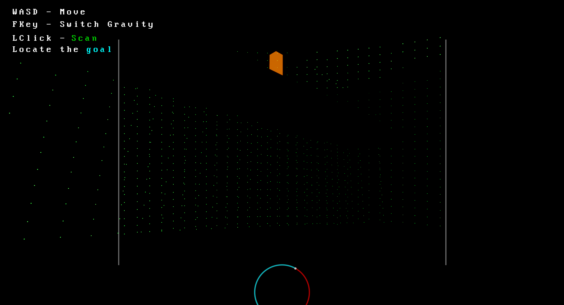 The player must find the exit from this dark world within a time limit, using a scanner to locate the walls surrounding him.
